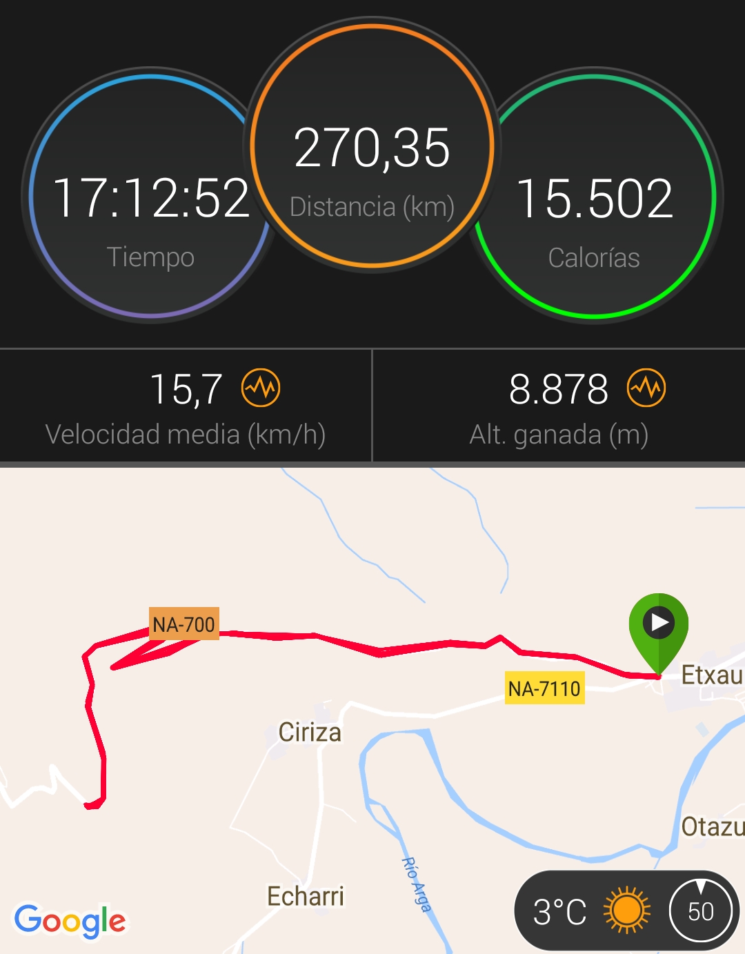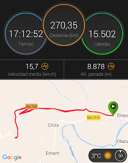 El pasado domingo logre el primer reto del año en el puerto Navarro de Etxauri. Para ello tuve que ascender y descender 20 veces durante 17 horas y 12 minutos hasta completar 270,35 kilómetros y ascender 8.878 metros.
