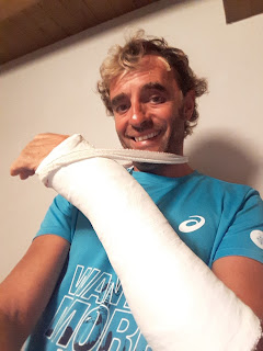 Este pasado viernes y después de terminar la rehabilitación de mi muñeca recibí el alta medica. Sin tiempo que perder primero hice 15 kilómetros corriendo y después de comer cuatro horas de bici, muy contento, lo mejor es que no tuve molestias en la muñeca encima de la bici.