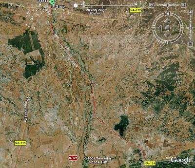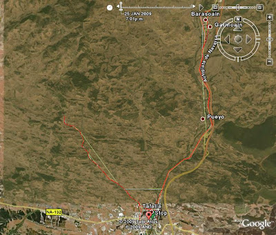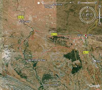 Hoy he salido temprano, para las 8:30 de la mañana ya estaba en la carretera, había quedado con mi amigo Josu Pagola, con el que hemos dado la vuelta Artajona a buen ritmo y con una temperatura agradable, que me ha permitido por primer día salir sin chubasquero, de vuelta en Tafalla hemos parado para hacer una foto y Josu ha marchado para casa, a mi aun me quedaban alrededor de 13 Km, así que he cogido rumbo a Pueyo, después de pasar Pueyo, he dado media vuelta y de nuevo a Tafalla.