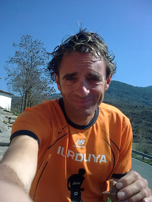 Hoy tampoco he realizado ninguna foto, así que ayer os pegaba la cruz y hoy la cara, esta foto es de mi llegada a Sabiñanigo después de hacer la mítica Quebrantahueso corriendo algo de lo que me siento muy orgulloso, ya que hay puse mi cuerpo muy al limite y me hizo sufrir demasiado.