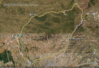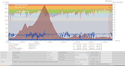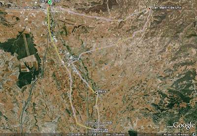 El día estaba muy bueno, además hay que ver que bonito se esta poniendo el campo, las piezas están chulisimas, con esa mezcla de colores del verde del campo y las flores amarillas y violetas, el recorrido de hoy ha sido bastante exigente con continuos repechos, en total 560 metros de ascenso, que no esta mal.