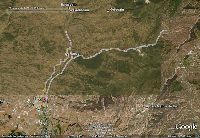 Después de grabarme un poco en casa, hemos bajado a la calle, unos estiramientos y salida rumbo al Maño por la general, de ahí dirección a Olleta, sobre el kilómetro 4,5 cruce dirección a Vezquiz, después Orisoain, luego Solchaga, de ahí a Oloriz, para después volver por la general hasta Pueyo, una vez en Pueyo he cogido el camino y vuelta a Tafalla