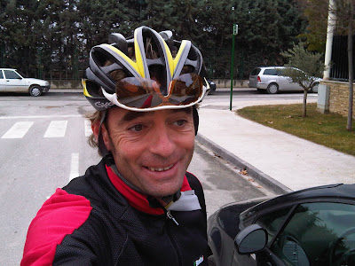 Cara de haber dado todo en la carretera. Reponiendo después de terminar.