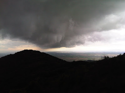 Preciosa subida entre arboles. Esta es la nube que ha traído el granizo.