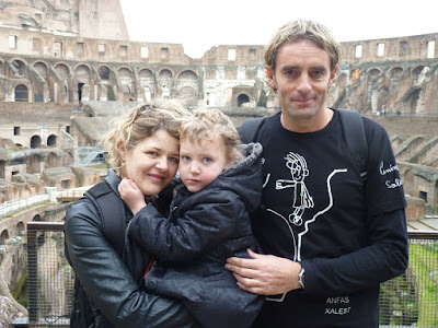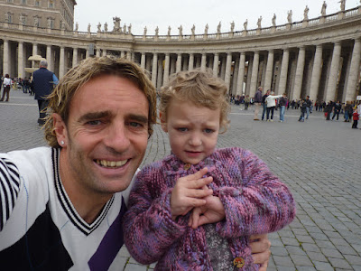Cabeza hacia abajo, gesto de sufrimiento. Pedazo de Pizza la que me comí nada mas aterrizar en Roma.