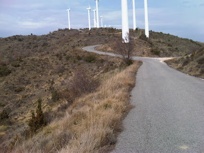 Ultimo duro kilómetro antes de coronar. Coronando con fuerte aire.