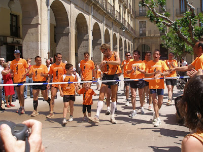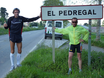 Esta mañana he bajado a la calle a las 7:00 de la mañana pensando en hacer el recorrido de la Maratón 150 en solitario, pero me he llevado una grata sorpresa, mi buen amigo Josu Pagola estaba esperándome, el fue quien mas kilómetros hizo junto a mi el pasado año en esos 150 largos días. Así que juntos hemos comenzado el recorrido, de inicio marchaba muy suelto, con el paso de los kilómetros mis ingles se comenzaban a cargar, el cambio de ritmo como me ocurrió el pasado año ha pasado factura, así que al paso por Tafalla en el kilómetro 26,5 y llevando una media de 5:22/Km hemos tomado un isotónico y hemos seguido rumbo a Olite por el camino de Vivero, al llegar a Olite nos hemos refrescado y hemos seguido rumbo a Tafalla, de regreso a Tafalla he tenido que para tres veces y caminar un rato, mis ingles querían reventar, se nota el cambio de ritmo, de correr a 7:00/Km a correr a 5:20/Km hace mucho daño.