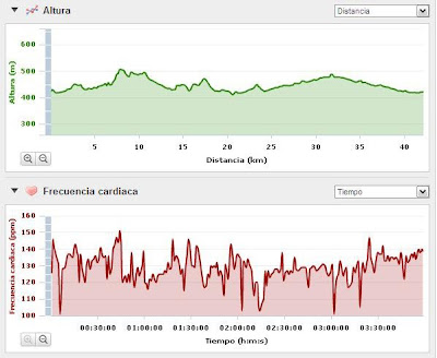 Día duro y difícil de verdad. Esta mañana me he levantado a las 8:00 muy destemplado y con escalofríos, para colmo en la calle había una espesa niebla, así pues he decidido desayunar lo poco que me entraba y esperar haber si me templaba, pero he comenzado a sentirme muy mal, entonces me he vuelto a meter en la cama. Sobre las 10:20 me he levantado totalmente empapado en sudor y un poco mas templado, así que he llamado a Victo Buñuel y hemos quedado a las 10:45. Muy pero que muy destemplado bajaba a la calle y comenzaba en compañia de Victor. Hemos subido hasta Pueyo por caminos para después regresar a Tafalla y seguir por el camino del Canal, el paso por la media ha sido 1h 51m, pero después cuando me he quedado solo ha comenzado mi calvario, he subido por la general hasta casi Barasoain para regresar de nuevo a Tafalla, los últimos doce kilómetros han sido interminables, he sufrido muchisimo pero al final ha merecido la pena. 42,20 kilómetros en 3h 58m.
