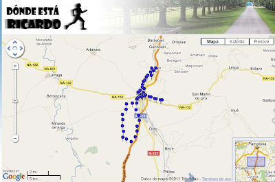 Esta tarde sobre las 15:10 comenzaba con el día después, cuesta empezar un nuevo día después de todo lo vivido ayer. De salida me lo he tomado con tranquilidad para que mis articulaciones fueran calentando poco a poco después de las vuelticas de ayer. Así pues he cogido la carretera de San Martín para realizar los primeros nueve kilómetros en solitario, luego he regresado en busca de Borja Osante que había venido de Bilbo para hacer unos kilómetros, juntos hemos salido en busca de Victor Buñuel para dar una vuelta por el Plano y regresar a Tafalla por el camino junto a la Autopista. Después en compañia de Borja hemos dado la vuelta a Pueyo por caminos con una parada en la fuente de Turrustaldea.
