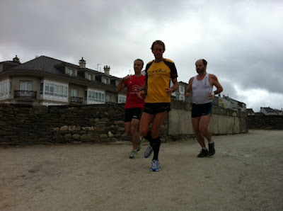 Sobre las 8:30 nos levantábamos de la cama, después de un merecido descanso, desayuno en el Hotel, cambio de ropa y a las 10:00 llegábamos a la Puerta del Ayuntamiento, enseguida aparecería Luis, después un cámara de Televisión Gallega y muy puntuales a las 10:31 comenzábamos. Enseguida cogeríamos la rampa de ascenso a la Muralla. Las primeras vueltas marchaba con las piernas un poco duras del agua de ayer, pero con el paso de las vueltas mis piernas han mejorado. Sobre la tercera vuelta se uniría Javier Revuelta, hermano de mi buen amigo Fer de Panamá. Juntos hemos dado unas siete vueltas. Después se uniría el lugareño Javier Fernandez para poner su granito de arena y dar unas vueltas. Así de bien acompañado he estado durante dos horas y media. Después el amigo Wifi ha estado a mi lado hasta el final.