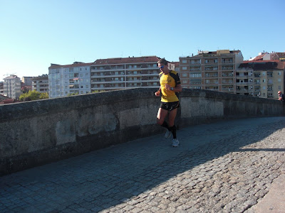 Buen debut por las bonitas tierras gallegas. Guarda cartuchos para la semana proxima, que esos tiempos dentro de las 4 horas, despues de las molestias pasadas dias atras, pueden pasarte factura. Descansad lo mas posible que mañana tambien tela de km que teneis por delante (por si era poco con la maraton, otras 7 horas para la vuelta a Tafalla, vaya humor que tienes Riki). Menos mal que tienes amigos como Wifi acompañandote en este tute por España.