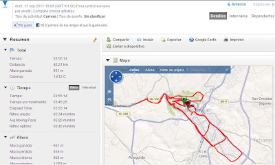 Al final han sido 42,21 kilómetros en 3h 55m con 661 metros de ascenso.