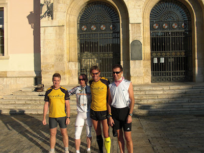 Esta mañana muy temprano salíamos de Tafalla, sobre las 8:30 llegábamos a Palencia, un buen almuerzo y a las 9:30 ya estábamos vestidos de faena en la Plaza Mayor de Palencia. Allí nos esperaban José Luis Martínez de Burgos y Alberto Maderuelo de Valladolid. Después han ido llegando los medios de comunicación y a las 10:00 tomábamos la salida.