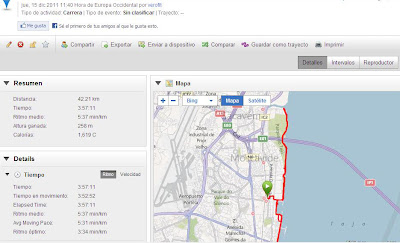 Otra maratón por debajo de las 4 horas, esta vez en tierras portuguesas, acompañado por un nativo y por Ongay. Lástima lo del pacense que quiso y no pudo, ojalá tengas otra ocasión, quizá en Barcelona...