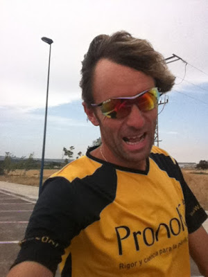 Despues sobre las 15:50 comenzaba en compañía de Fernando Dorronsoro, hemos subido hasta Pueyo por caminos, después hemos cruzado a la carretera de Olleta para pasar por las pozas y subir por El Conde, luego hemos regresado de nuevo a Tafalla. He aprovechado el paso por Tafalla para subir a casa coger algo de fruta y merendar. Ya en solitario he dado la vuelta a la variante de Olite, después al paso por Tafalla me quedaban solamente seis kilómetros que los he completado por el recorrido del cross en compañía de Iñaki Urrutia.
