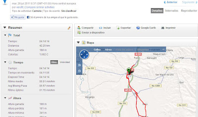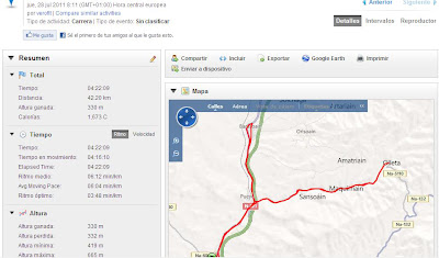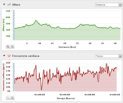 Han sido 42,21 kilómetros en 3h 53m. Durante toda la mañana hemos acompañados de una intermitente lluvia que a veces arreciaba.