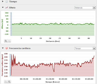 De inicio marchaba clavado, de esos días que estas durísimo, es como si de repente se me habría olvidado correr, son días incómodos en los que la cabeza te dice basta y te pide parar, pero tienes que sacar fuerzas no se de donde para vencer esos pensamientos y no parar. Además con el pensamiento de que no tenía tiempo para tener un día malo ya que no llegaría la trabajo. Así pues las dos primeras horas han sido muy duras, después poco a poco he salido del bache y he conseguido regresar a Tafalla a buen ritmo para completar los 42,22 kilómetros en 4h 16m.