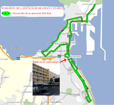 Día largo y muy ajetreado. Mi despertador sonaba a las 4:30 de la madrugada, un desayuno y rumbo a Bilbao, allí hemos dejado el coche y nos hemos dirigido al aeropuerto. Después de dejar las maletas hemos visto que el avión llevaba retraso, así que hemos llegado a Madrid justos de tiempo para hacer el embarque a Las Palmas de Gran Canaria. Al llegar nos hemos dirigido a las cintas en busca del equipaje, pero por desgracia el equipaje no había llegado. Nos han dicho que seguramente vendría en el próximo avión, pero no nos aseguraban nada, así que al llegar al hotel he salido en busca de ropa para correr y unas medias. Más vale que he sido precavido y llevaba las zapatillas puestas en el viaje.