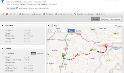 El paso por la Maratón un poco antes de comenzar los Altos de Javier ha sido en 3h 53m. Después hemos terminado pasado el Castillo donde nos esperaba Fernando Dorronsoro que hoy ha sido el encargado de la logística con 50 kilómetros en 4h 36m.