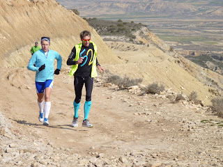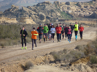 A las 8:55 comenzábamos con la cuarta travesía de la Bardena blanca, de inicio ha un ritmo muy cómodo, poco a poco y con el paso de los kilómetros se ha ido acelerando la marcha para un poco antes del polígono de tiro hacer la primera parada a tomar un poco de agua, después hemos continuado con fuerte viento lateral hasta Castildetierra. Foto de familia y avituallamiento para seguir hasta el Cuartel Militar donde esperaba el autobús y varios corredores han terminado.