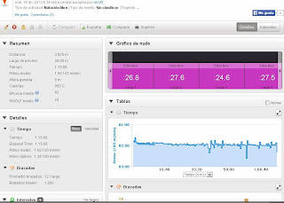 Al principio me costo mucho, tenia el estomago un poco enfriado, poco a poco fueron pasando los largos hasta completar las 153 piscinas en 1h 15m.
