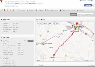 Al salir a la calle para comenzar con la bici me esperaba una densa niebla que me acompañaría durante los primeros 12 kilómetros, después la niebla dio paso al sol y con algo de viento en contra subí hasta Cariñena donde di la vuelta para regresar de nuevo hasta la entrada de Zaragoza, media vuelta a la rotonda y de nuevo hacia Cariñena donde volví a retornar por ultima vez en busca de la entrada a la Ciudad. Allí me esperaba David para guiarme por la Ciudad hasta la Tienda donde haría la última de las transiciones.