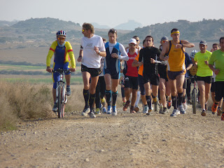 Pase por la entrada de casa para hacer la ultima transición, cambio de ropa, me puse las zapatillas y salí hacia los caminos de la Central, enseguida me alcanzo Arturo Ros que venia en bicicleta y me acompañaría durante casi tres horas, estuvimos por la zona del Plano y del Canal con el frontal en la cabeza hasta las 20:30, después ya por las calles de Tafalla acompañado del amigo Nicolás Kareaga durante otros 45 minutos para terminar los últimos seis kilómetros en solitario.