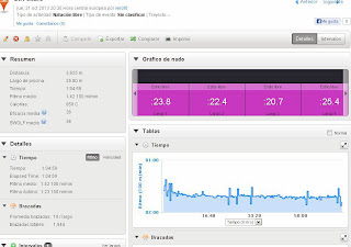 El comienzo fue brutal, gran destemple, escalofríos y mucho sueño, conforme nadaba se me cerraban los ojos, incluso llegue a golpear varias veces el bordillo de la piscina. Muy despacio pasaron los largos hasta completar los 3.800 metros en 1h 20m.