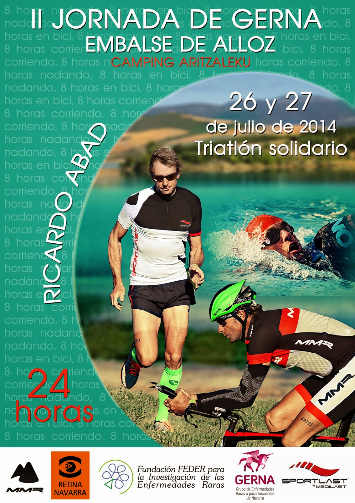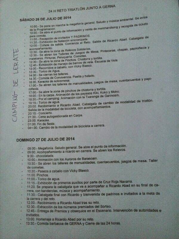 El reto comenzara a las 12:00 del mediodía del sábado 26 en el embarcadero del Camping de Aritzaleku, permaneceré nadando durante ocho horas en un circuito de unos tres kilómetros, si todo sale bien saldré sobre las 20:00 horas para coger la bici y permanecer pedaleando hasta las 4:00 de la madrugada, hora en la que regresare al Camping para calzarme las zapatillas y completar las ultimas ocho horas corriendo.