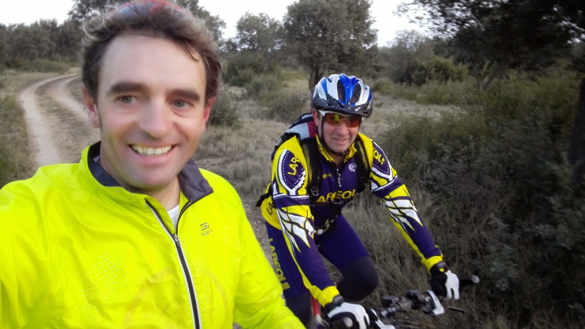 Sobre las 17:15 comenzaba con la Maratón en compañía de Javier Ongay, estuvimos por las sendas del Plano al abrigo del viento hasta que anocheció y regresamos a Tafalla para completar el recorrido. Fue muy importante la labor de Javier Ongay con la bici, estar un domingo en solitario no se lleva nada bien.