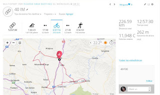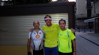 En la Maratón estuve muy bien acompañado por Javier Ongay en bici y Jotas corriendo, fue una Maratón muy sufrida y calurosa, tuvimos que parar muchas veces para hidratarnos, hubo momentos que superamos los 40 grados de temperatura.