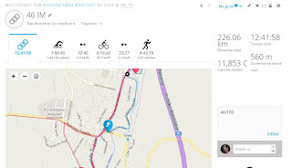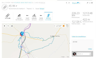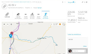 Ayer miércoles y algo mas recuperado comencé con el 46 en la piscina de Tafalla, seguidamente los interminables 180 kilómetros en bici con bastante calor y terminamos con una Maratón de ida y vuelta a Ujue. Estuve acompañado de nuevo de Jotas y Arturo Ros. Grandisima labor de estos dos amigos en el reto.