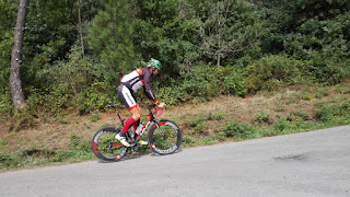 La salida en bici de Ribadeo fue muy exigente y el recorrido hasta Santiago fue muy duro, continuos puertos y repechos. Además ese día hice algún kilómetro más para hacer la transición en el mismo Santiago y completar la última Maratón dentro de la Ciudad.