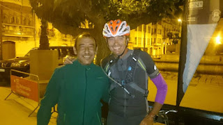 Sobre las seis de la tarde y con bastante calor se dio la salida. Una salida muy rápida que nos llevo con casi 28 Km/h hasta las faldas de Monserrat, allí comenzaba la primera subida exigente, poco a poco fue anocheciendo para llegar al primer punto de control en Calaf, comimos algo y reponer líquidos y de nuevo en ruta, una tormenta sobre las tres de la madrugada nos dejo helados y empapados. Al llegar a Balaguer tuvimos que cambiarnos de ropa y darle un manguerazo a la bici. Sobre las cuatro de la madrugada salíamos de Balaguer, las horas antes del amanecer me resultaron muy duras, mucho sueño, me dormía encima del manillar, ya cuando amaneció me fui recuperando y Odei que era mi compañero de aventura comenzó a pasarlo mal, hasta tal punto que pensó en abandonar en Sariñena que era el siguiente punto de control. Unos 20 kilómetros antes de Sariñena decidimos separarnos y yo seguí en solitario hasta Sariñena. Al salir de Sariñena y rumbo a Zuera me cogio por detrás un grupo de cuatro corredores en el que viajaban conocidos de la Titán, así pues resulto la etapa mas cómoda y llevadera hasta llegar a Zuera.